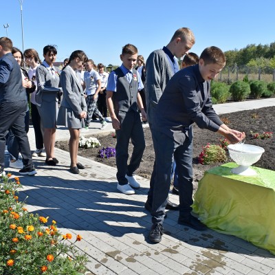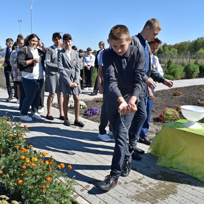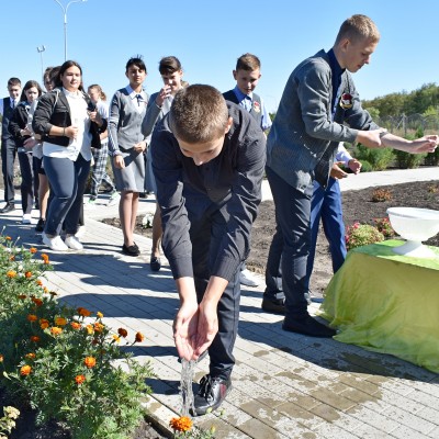 Каждый участник акции, набрав в ладони воду, напоил цветы, отдавая дань памяти всем безвинно погибшим.