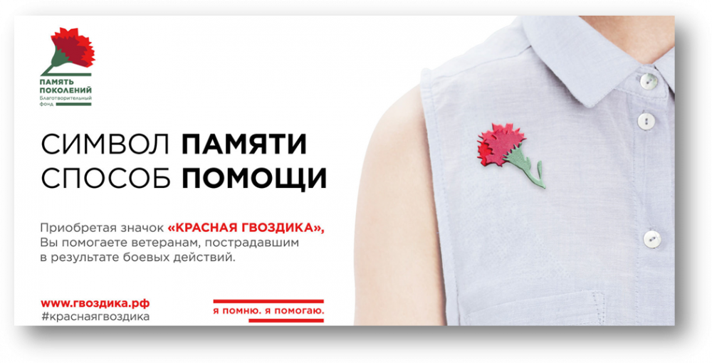 Благотворительный фонд «ПАМЯТЬ ПОКОЛЕНИЙ» приглашает всех желающих присоединиться к всероссийской акции «Красная гвоздика», которая призвана помогать ветеранам не только словом, но и делом. Прежде всего, она направлена на помощь ветеранам Великой Отечественной войны, события которой, в свою очередь, являются для наших граждан отражением потенциала патриотизма, накопленного за героические годы жесточайшей борьбы и трудового подвига, вдохновляют современное поколение следовать их идеалам и опыту служения Отечеству.