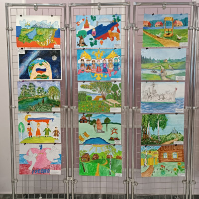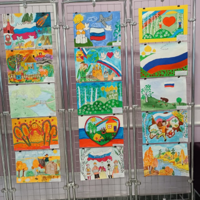 На выставке представлены детские рисунки – это работы победителей районного конкурса «Моя родина - Россия», который проходил в октябре 2023г.
