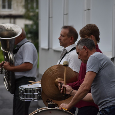 Музыканты исполнили известные произведения: марш "Походный", музыку из кинофильма "Жестокий романс", вальс "На сопках Маньчжурии, марш "Тоска по Родине", вальс "Дунайские волны", марш "Привет музыкантам", вальс "Осень", а так же марш "Прощание славянки".