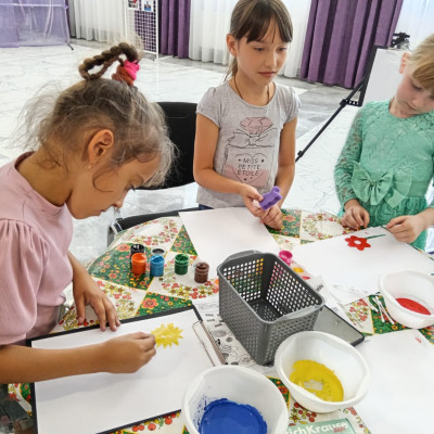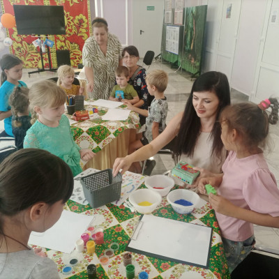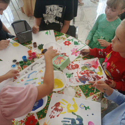 Темой творческого вечера стало лето. Дети и взрослые отвечали на вопросы познавательной викторины. Вспоминали поговорки о радуге. Перечисляли все погодные явления, происходящие летом, чтобы запечатлеть их на своём рисунке при помощи пальчиковых красок, карандашей и гуаши.