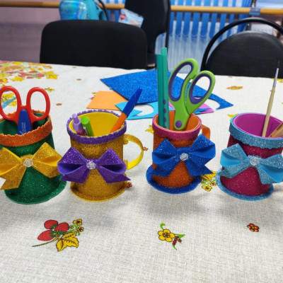 Сегодня на кружке «Умей-ка» царила атмосфера творчества и радости! Дети, погрузившись в мир рукоделия, создали очаровательную карандашницу из фоамирана, придав ей форму изящного бокала с ручкой.