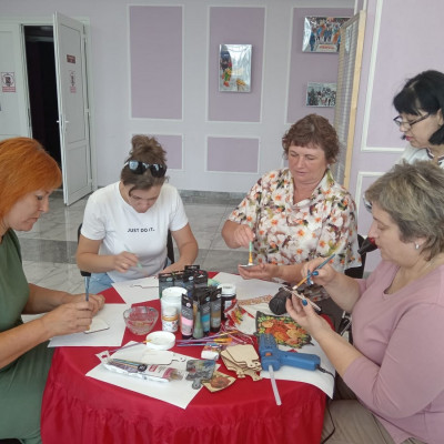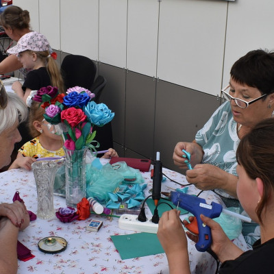 Мастера провели мастер-классы по вязанию, изготовлению роз из лент, созданию тряпичных кукол и продемонстрировали работу в технике "Декупаж".